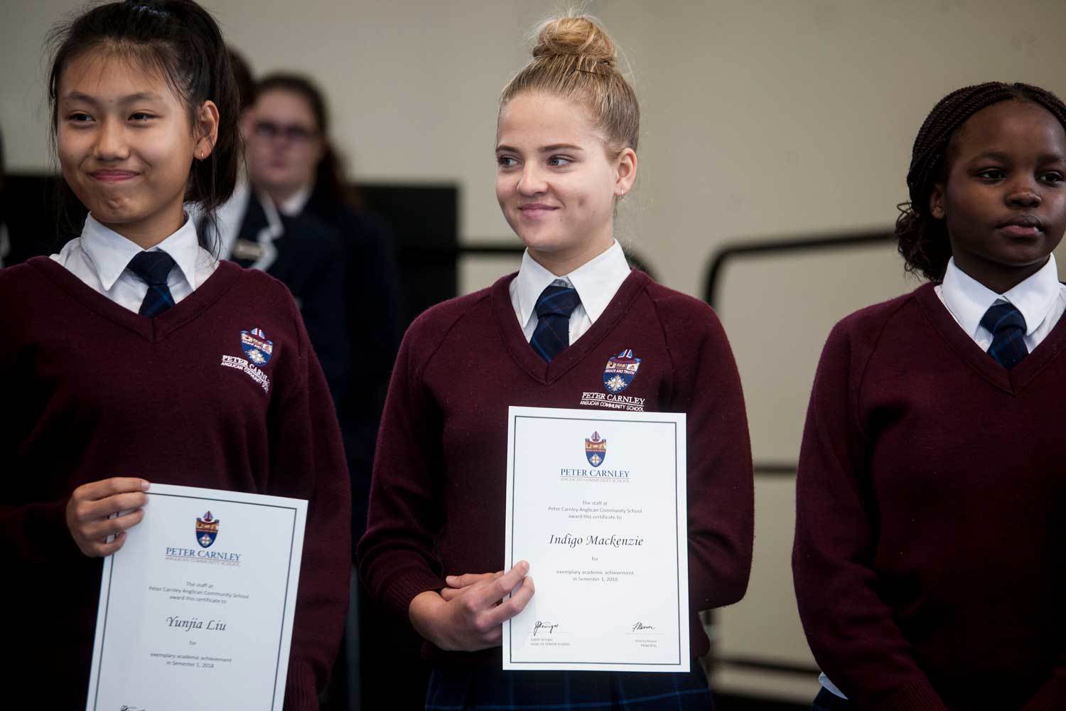 On Thursday 19 July, the Senior School gathered in the Keith Lindbeck Centre to celebrate the outstanding Academic achievements of students from Years 7-12 in Semester 1. Close to 70 students received Exemplary Certificates with two students from Year 7, Stephanie Beaumont Cabrera and Tashinga Chipfunhu receiving Commendations.